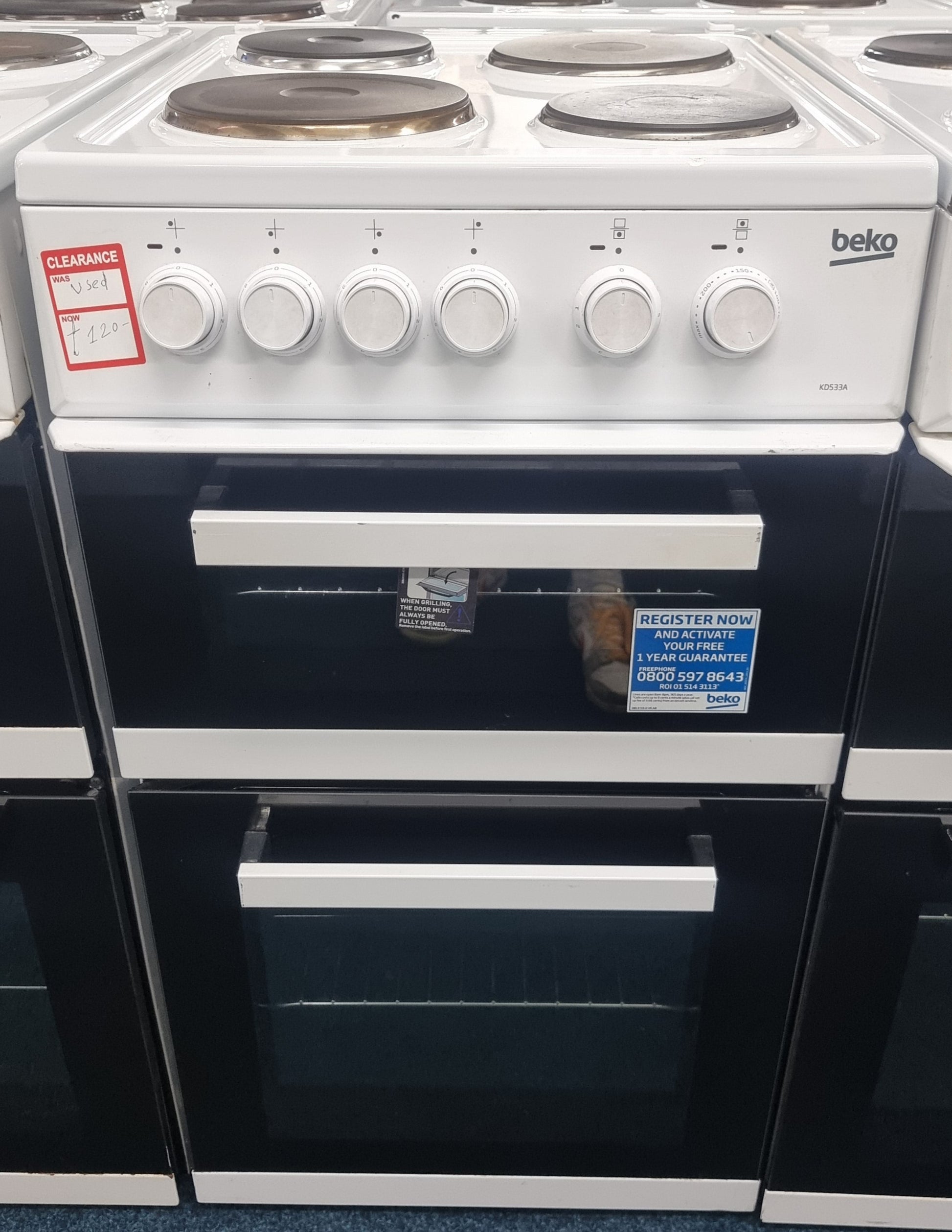 Beko KD533AW 50cm Twin Cavity Electric Cooker – White – Used
