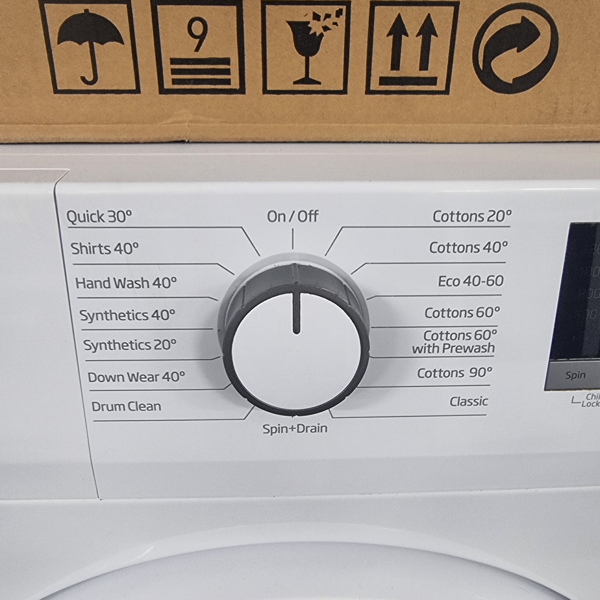 This machine features 15 wash programmes, including a Quick Wash that can clean a full load in just 28 minutes – ideal for busy lifestyles. An automatic half load function saves water and energy when you’re washing smaller loads, while a child lock ensures settings aren’t accidentally changed.