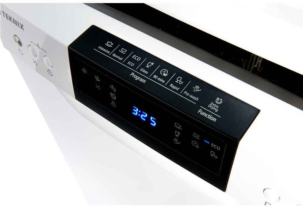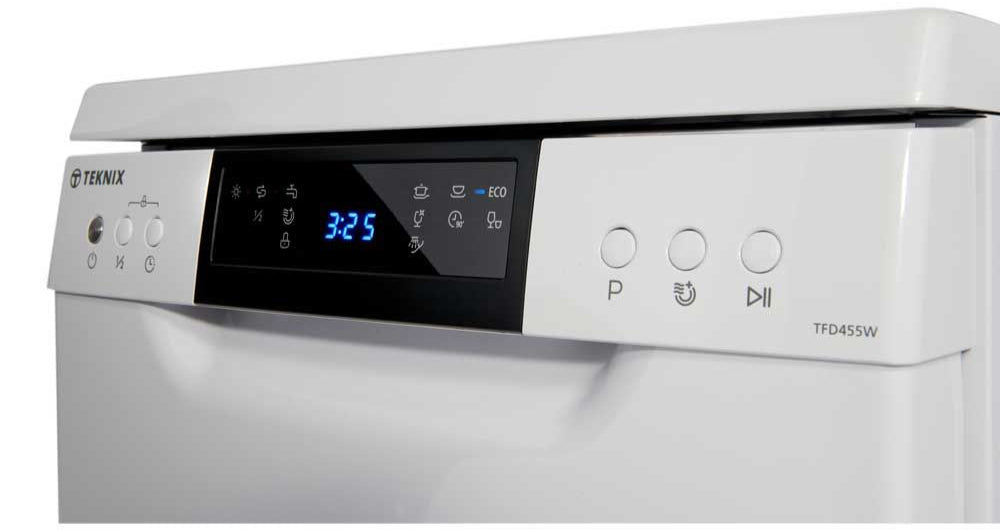 Compact yet powerful, the Teknix TFD455W slimline dishwasher is ideal for smaller kitchens or households, offering space-saving convenience with 9 place settings and a range of useful features.
