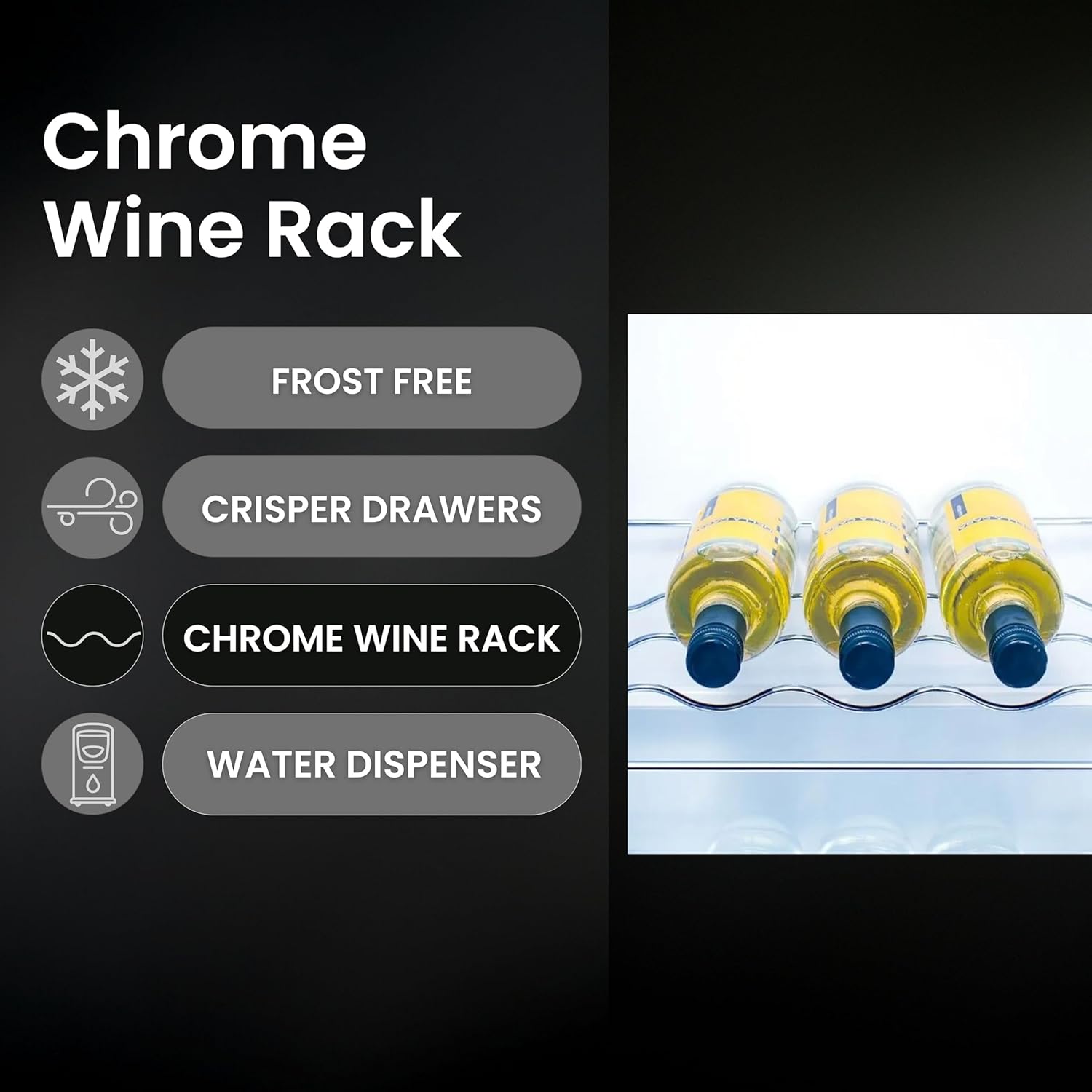 - Total No Frost – Prevents ice build-up for consistent cooling and zero defrosting hassle.