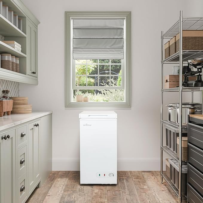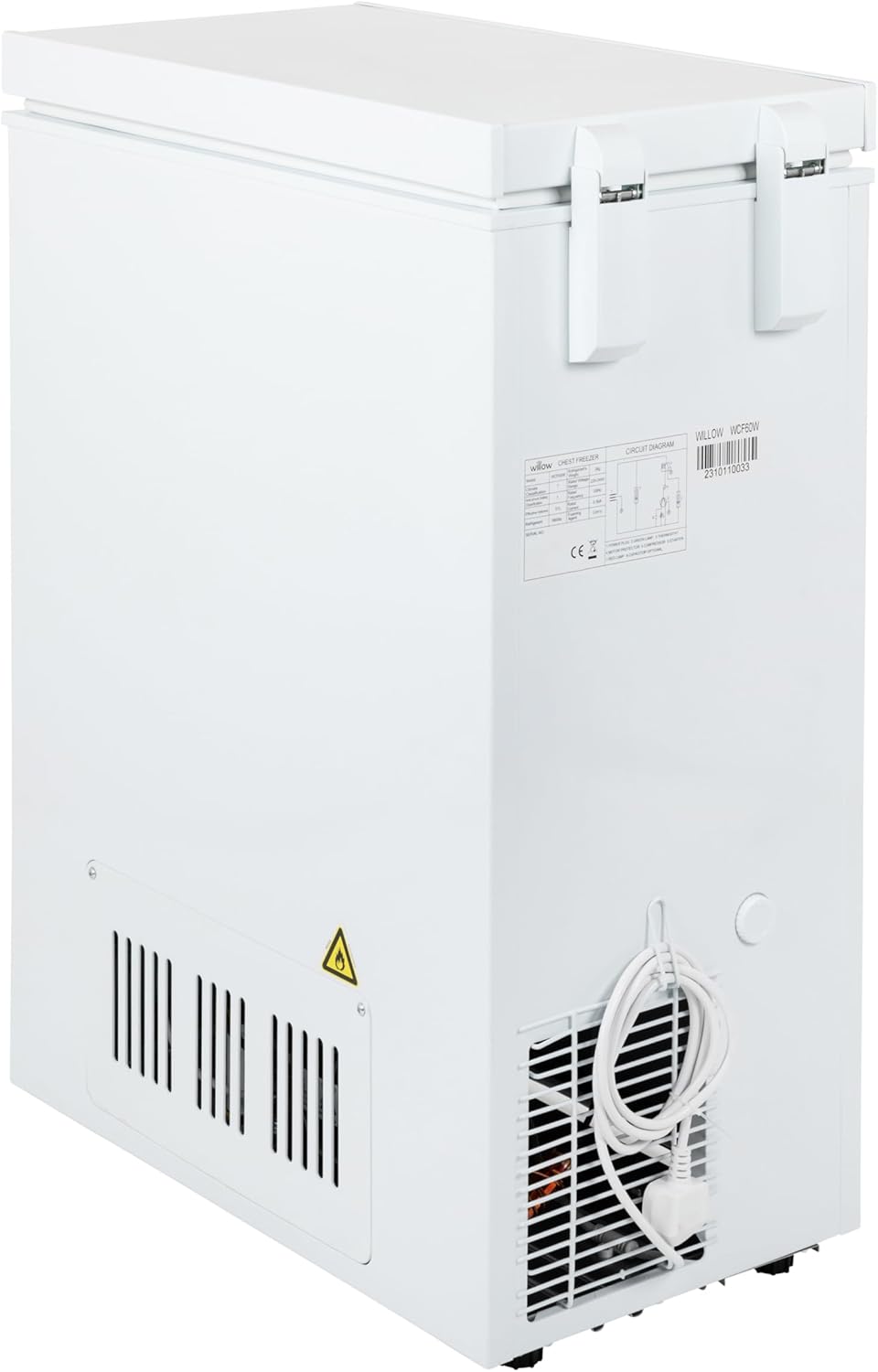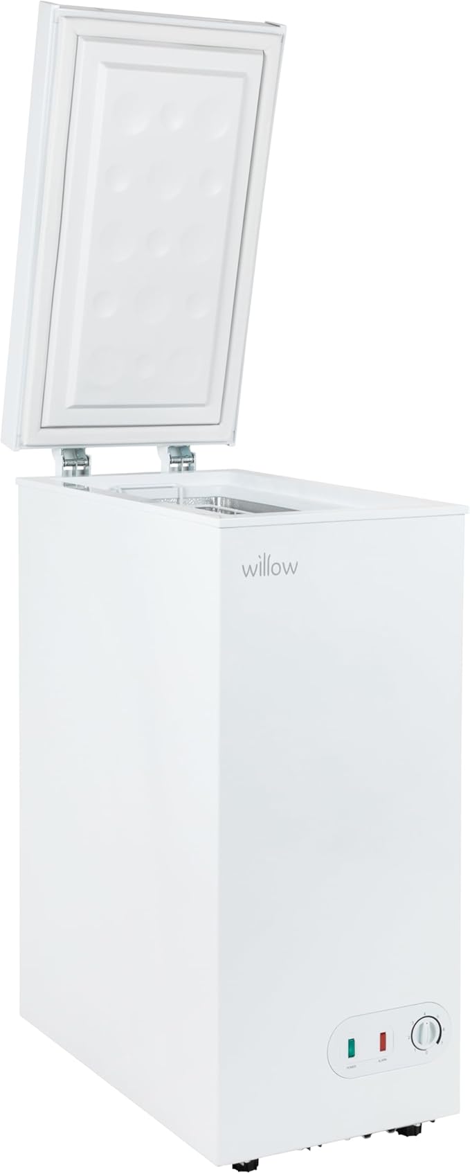 The Willow WCF60W is a compact 51L freestanding chest freezer, designed for reliable frozen storage in any home, garage, or outbuilding. It features a removable storage basket for convenient organisation, an adjustable thermostat, and a 4-star freezer rating for efficient freezing below -18°C. With quiet 42dBA operation and a clean, mark-resistant white finish, it’s a practical and stylish solution for everyday freezing needs.