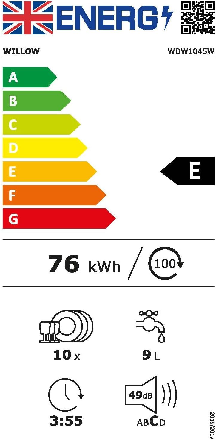 - Five Wash Programs - The Willow WDW1045W dishwasher has 5 wash programs, including ECO and rapid allowing you to choose the program that works best for you.